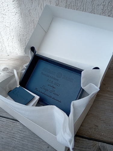 Portaoggetti in pelle blu personalizzato